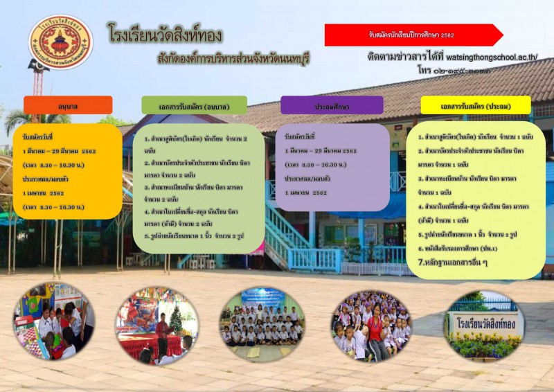 โรงเรียนวัดสิงห์ทองเปิดรับสมัครนักเรียนปีการศึกษา 2562
