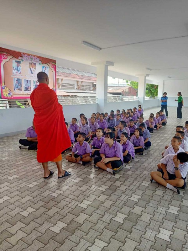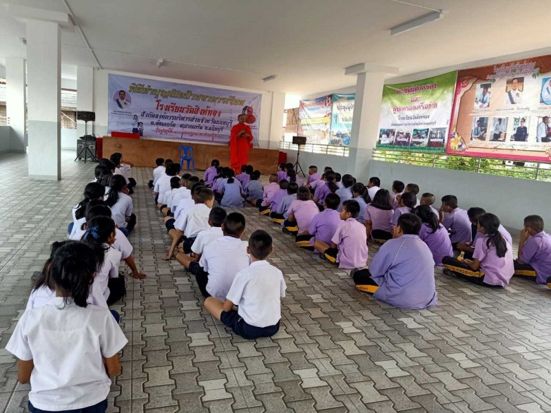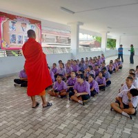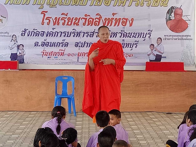 คณะสงฆ์วัดเชิงเลนได้เข้าประชาสัมพันธ์โครงการบรรพชาสามเณรภาคฤดูร้อนฯ ประจำปี 2563 แก่นักเรียนโรงเรียนวัดสิงห์ทอง