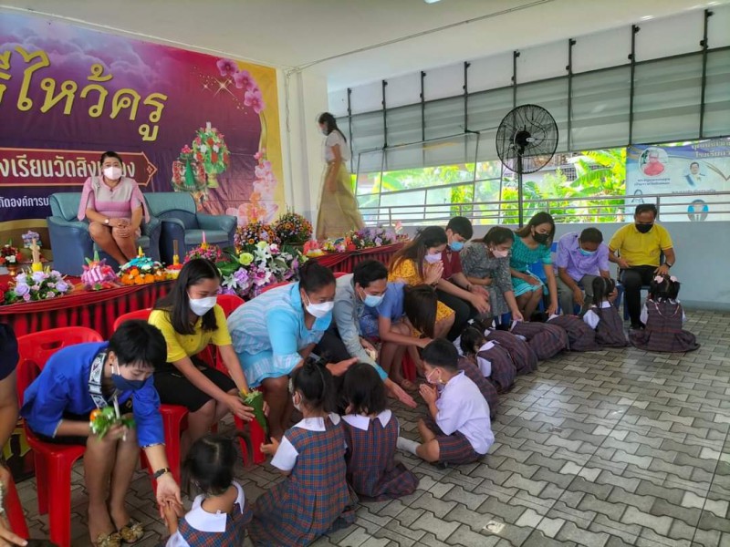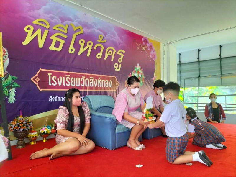 วันพฤหัสบดีที่ 30 มิถุนายน 2565 โรงเรียนวัดสิงห์ทอง ได้จัดกิจกรรมไหว้ครู ประจำปีการศึกษา 2565 เพื่อให้นักเรียนได้ระลึกนึกถึงพระคุณครู ผู้ซึ่งบ่มเพราะความรู้ ความมีระเบียบวินัย และส่งเสริมให้นักเรียนเป็นคนดีของสังคม