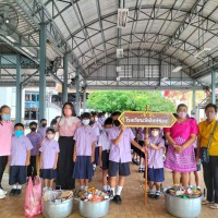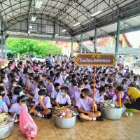 การทำบุญข้าวสาร อาหารแห้งที่นักเรียนนำมาร่วมทำบุญถวายวัดในครั้งนี้