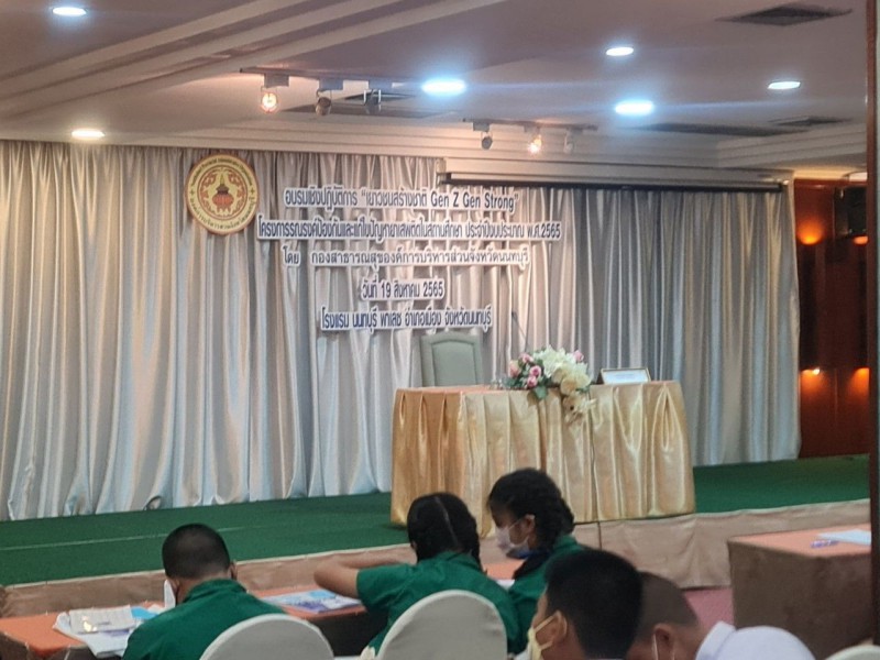 วันที่ 19 สิงหาคม 2565 อบรมเชิงปฏิบัติการ เยาวชนสร้างชาติ Gen Z Gen Stronh โครงการรณรงค์ป้องกันและ แก้ไขปัญหายาเสพติดในสถานศึกษา ประจำปีงบประมาณ 2565 โดย กองสาธารณสุของค์การบริหารส่วนจังหวัดนนทบุรี ณ โรงแรม นนทบุรีพาเลช อำดภอเมือง จังหวัดนนทบุรี