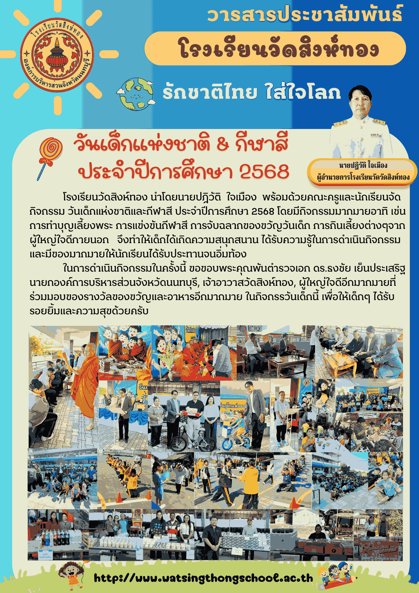 โรงเรียนวัดสิงห์ทอง Watsingthongschool โรงเรียนแห่งการพัฒนาในยุค 4.0 ยินดีต้อนรับเข้าสู่เว็บไซต์ โรงเรียนวัดสิงห์ทอง สังกัดองค์การบริหารส่วนจังหวัดนนทบุรี ค่ะ